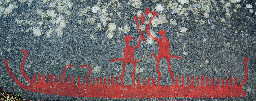 The axes and the horns indicate that the Fossum Carving describes one or several rituals that took place more or less at the same time. The scene is surrounded by ships, some of which seem to be travelling west, towards the ocean, and others that seem to be returning. Perhaps these were rituals or celebrations that were held in connections with the journeys?