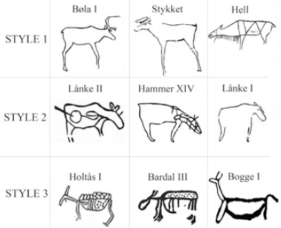 In similar ways research on the carved panels with hunters’ motifs from the end of the Stone Age in Scandinavia have been heavily influenced by the view that social development could be detected by stylistic development. Also in Scandinavia most researchers have been hesitant to discard style as the most trusted dating method. A few researchers, however, have pointed towards the need for using both shoreline and radiocarbon dating to obtain more tangible data, and see style dating as an outdated method.