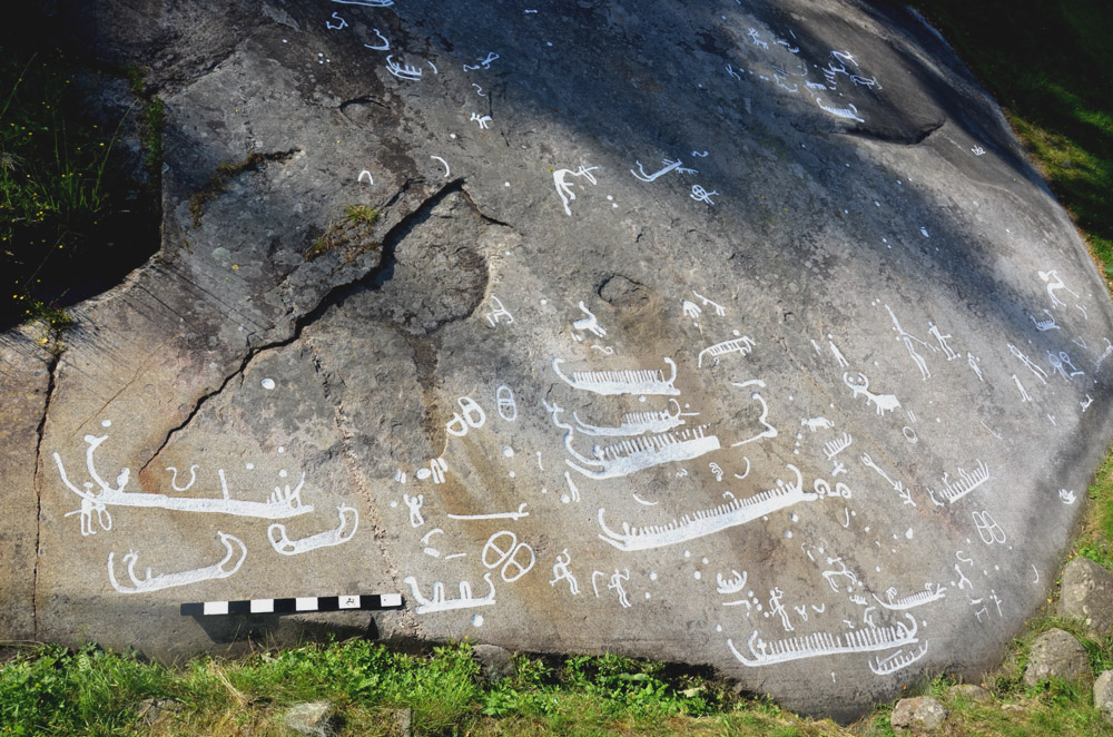 The axes and the horns indicate that the Fossum Carving describes one or several rituals that took place more or less at the same time. The scene is surrounded by ships, some of which seem to be travelling west, towards the ocean, and others that seem to be returning. Perhaps these were rituals or celebrations that were held in connections with the journeys?