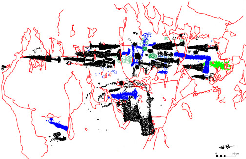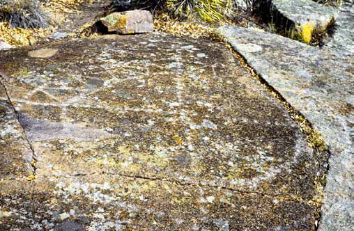 These representations owe their name to their cruciform design that is traced through a series of dots drilled or pecked on rocks or stucco. They are about 2 centimeters in diameter and they are placed at 3-4 centimeters intervals, measured at the center of each point; however, this is not a standard measure.