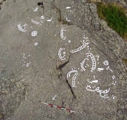 Increasingly, recent PhD studies by Gjerde (1998) and Wold (2002) have drawn upon research into typology by Kaul (1998). Kaul (1998; 2006) in turn builds on the work of Glob and suggests Late Bronze Age styles of representation from the corpus of ship renderings found on Danish and Southern Swedish bronze razors. Shore displacement has been applied to the Alta and Vingen Mesolithic rock art sites (Sognnes 2003). Study by Ling (2008) in Sweden has suggested significant altitudinal variations in ship representations in Bohuslän, Sweden. The tentative chronology that has been constructed from the altitudinal distribution of ships in the landscape has broadly confirmed the seriation by Kaul. Read the article as pdf